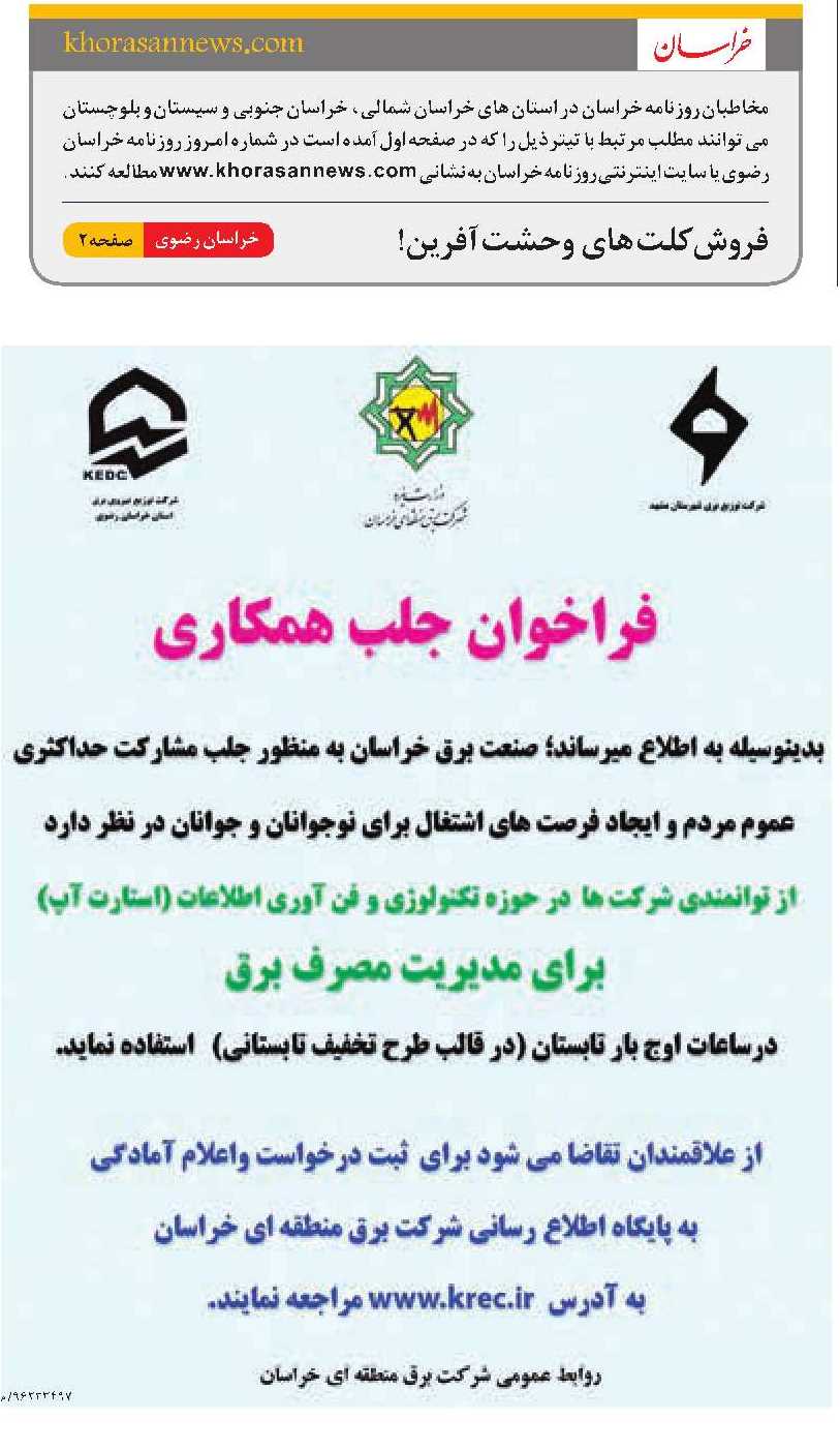 در شهر خودتون راهپیمایی نبود که عکس میدان آزادی تهران رو چاپ کردین؟ ناسلامتی شما روزنامه خراسانید!
