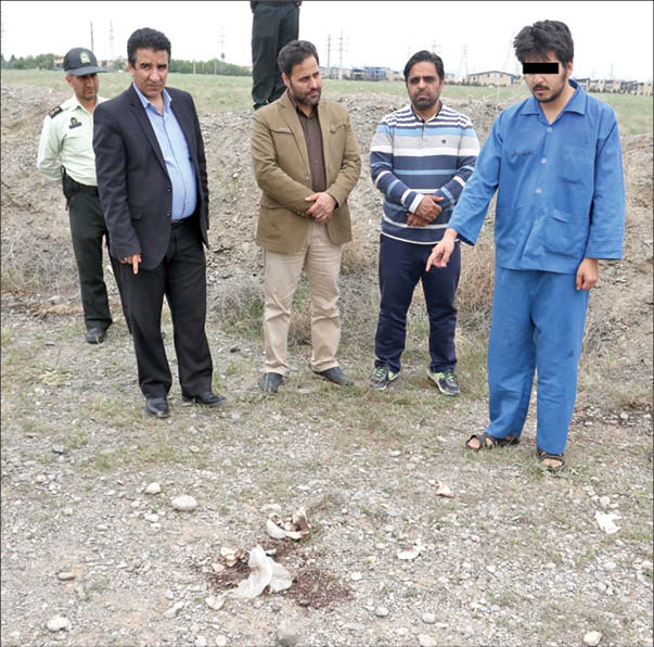 این گزارش حاکی است، متهم 27 ساله در حالی که خون های ریخته شده روی زمین خاکی را نشان می داد، اضافه کرد: او را با ضربات چاقو و سنگ در این محل به قتل رساندم و از محل گریختم تا این که توسط کارآگاهان دستگیر شدم.در بازسازی صحنه جنایت که با حضور سرهنگ کارآگاه محمدرضا غلامی ثانی (رئیس اداره جنایی پلیس آگاهی خراسان رضوی) انجام شد، ابتدا سرهنگ مهدی سلطانیان (رئیس دایره قتل آگاهی) جزئیاتی از محتویات پرونده و چگونگی دستگیری متهم را شرح داد و در پایان نیز قاضی شعبه 211 دادسرای عمومی و انقلاب مشهد با صدور قرار بازداشت موقت، متهم به قتل را روانه زندان کرد تا مراحل قانونی دیگر این پرونده جنایی طی شود.