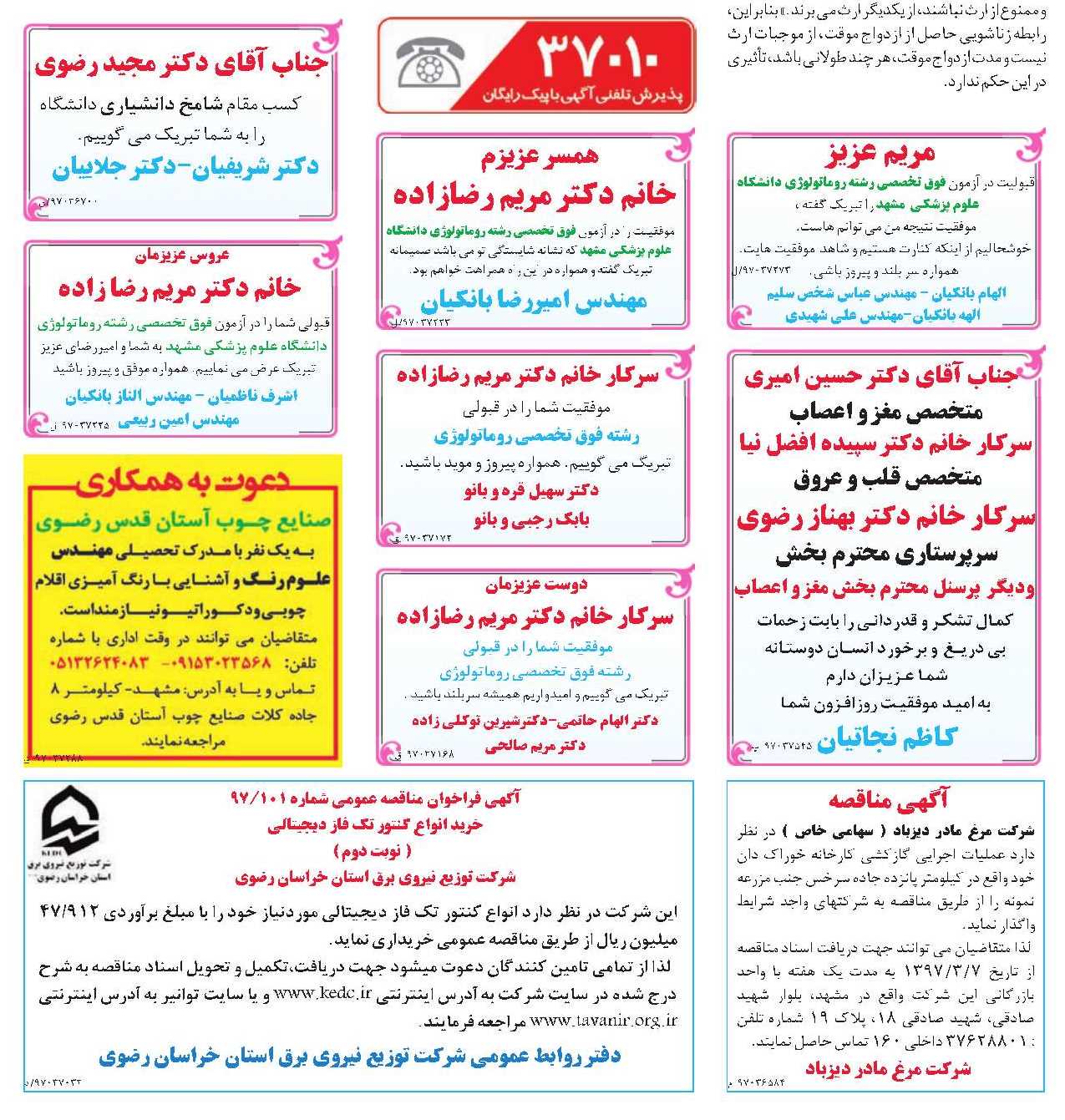 خوانندگان محترم! در این صفحه روزنامه خراسان، پاسخگوی پرسش های حقوقی شما هستیم. شما می توانید پرسش های خود را در تمام زمینه های حقوقی، از طریق پیامک به شماره 2000999 ارسال کنید. لطفاً در ابتدای متن پیامک حتما کلمه «حقوقی» را قید فرمایید.