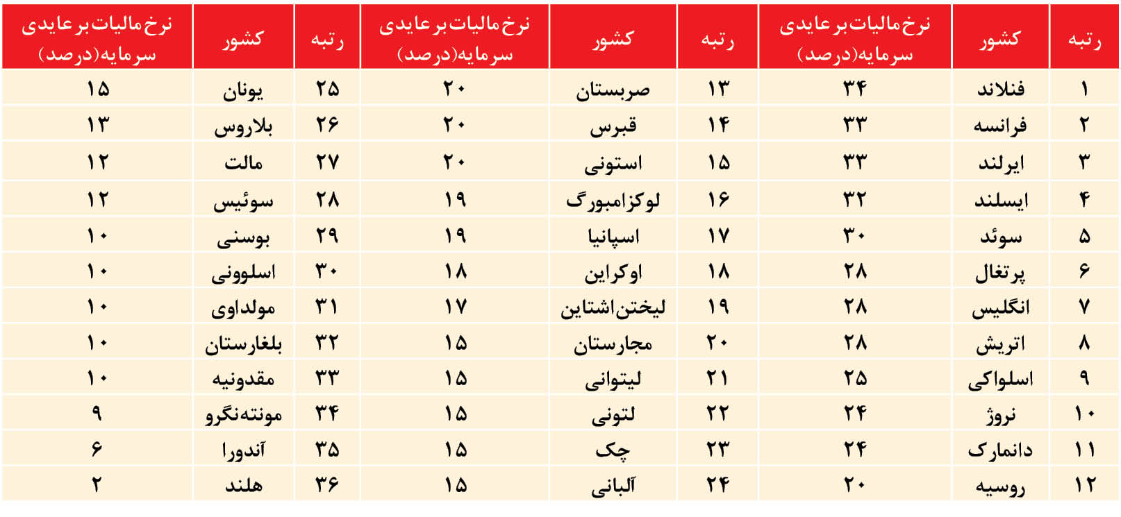 یکی از انواع مالیات که به منظور تضعیف فعالیت های غیرمولد و کاهش انگیزه های سوداگرانه استفاده می شود، مالیات بر عایدی (سود) سرمایه یا همان Capital Gains Tax)CGT) است. عایدی سرمایه به سود حاصل از سرمایه اطلاق می شود. سود حاصل از سرمایه نوعاً عبارت است از تفاوت قیمت فروش یک دارایی نسبت به قیمت خرید آن.اغلب کشورهای توسعه یافته نظیر ایالات متحده، انگلستان، فرانسه، ژاپن و آلمان از دیرباز مالیات بر عایدی سرمایه را به عنوان یکی از پایه های مهم مالیاتی خود در دستور کار قرار داده اند که هم جامعه هدف آن بیشتر اشخاص برخوردار است و هم می تواند درآمدهای زیادی برای دولت به همراه داشته باشد.مالیات بر عایدی خانه های اضافی می تواند یکی از گزینه های اصلی اجرای مالیات بر عایدی سرمایه باشد. این نوع مالیات می تواند منجر به کاهش تقاضای سرمایه ای مسکن و در نتیجه کاهش یا ثبات قیمت مسکن در بخش تقاضای مصرفی شود و در شرایط تحریم، نقدینگی را به سمت تولید هدایت کند. درجدول پایین فهرست کشورهای اروپایی که در آن ها مالیات بر عایدی مسکن دریافت میشود آورده شده است. کشورهای آسیایی زیادی از جمله کره جنوبی، هند، بنگلادش، آذربایجان، تایلند، نپال، ازبکستان، چین، ژاپن، اندونزی، مالزی و لبنان نیز از این نوع مالیات بر عایدی مسکن استفاده می کنند.پیش بینی می شود در صورت استفاده از این مالیات، با اعمال نرخ 20درصد با توجه به تعداد خانوارهای دارای چند ملک، حداقل شاهد افزایش پنج هزار میلیارد تومانی درآمدهای مالیاتی، ناشی از عایدی املاک باشیم (با فرض یک مسکن مورد استفاده هر خانوار معاف از مالیات).