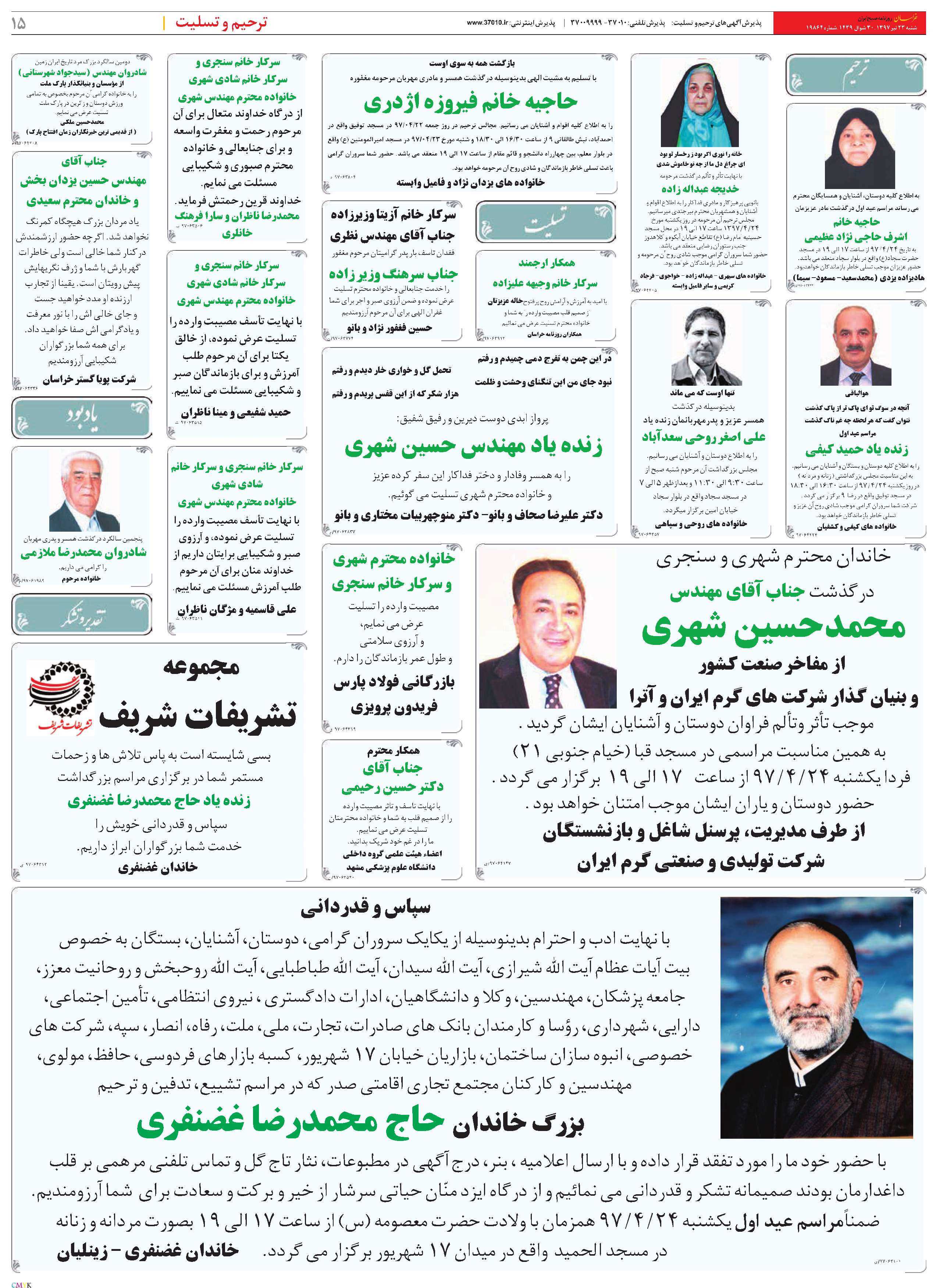 صفحه 15 : ترحیم و تسلیت