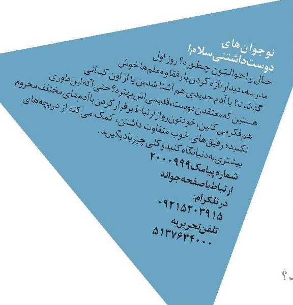 شما را نمیدانم ولی من فکر میکنم تب دوست داشته شدن از اول عمر بشر روی کره خاکی تا روز ازل و نابودی نسل انسان بوده و ادامه خواهدداشت. کمتر کسی پیدا میشود که دلش نخواهد محبوب قلوب باشد! این احساس ارزشمندی و دوستداشتنی بودن در دوره نوجوانی خیلی شدیدتر از دورههای دیگر است و تقریبا همه شما دوستهای عزیزم کم و بیش آن را تجربه کردهاید؛ امروز با «ملیکا وحیدی» 14ساله، «فاطیما کاظمی» 14ساله و «سارینا یزدانشناس» 12ساله درباره این مدل احساسات و از خود گذشتنهای احساسی صحبت کردیم که اتفاقا خیلی هم جالب بود. با ما همراه باشید تا با نظرات دوستهای نوجوان تان آشنا شوید.