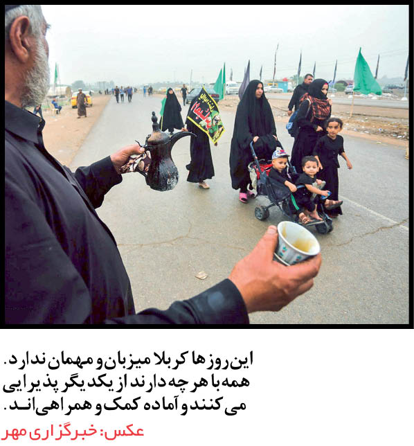 مفهوم «راهپیمایی اربعین» به معنی پیادهرویِ زائران و عاشقان امامحسین(ع) از محل زندگیشان به سمتِ بارگاه مقدس ایشان برای عرض ارادت و تجدید عهد در چهلمین روز از شهادت او و خانواده و یارانش، در شیعه، شور و حال وصف ناشدنی میآفریند و وحدت و همبستگی در کنار از خودگذشتگی و بذل جان و مال به همراه دارد، چرا که جلوهای از تداوم قیام حسینی در تاریخ است. دشمن هم در مواجهه با این گردهمایی، دچار رعب و وحشت میشود چرا که وحدت حاصل از آن، حول عزت و آزادگی بنا شده است و انسانهای بسیاری از ادیان و ملیتهای مختلف را بهواسطه جاذبه حسین بن علی(ع) در مسیری به دور از مادیات و نفسانیات، زیر یک بیرق و پرچم جمع میکند. آنان که توفیق داشتند و در این مسیر قدم برداشتند، روحشان با معارف حسینی صیقل میخورد؛ بنابراین مهم است پس از بازگشت از این سفر معنوی، دستاوردهای گام زدن در این راه را در خویش حفظ و تقویت کنند. از سوی دیگر آنان که به هر دلیلی از این ضیافت و گردهمایی بزرگ جاماندهاند، اگر به ریسمان زیارت اربعین دست بیاویزند، اثرش کم از حضور در پیادهروی نیست. منتها چه راهپیماییِ باشکوه اربعین را تجربه کردهایم و چه به هر دلیل، هنوز طعم این لذت معنوی را نچشیدهایــم، اگر با حضور قلب و ایمان و صداقت بنگریم، میبینیم امامحسین(ع) با زندگی و شهادتشان راهِ درست زندگی را نشانمان دادهاند تا در جهل و تاریکی دنیای مادی از وظیفه دینی و انسانی خود غافل نشویم. کربلا و عاشورا مدام در تاریخ جاری و ساری است و حسین(ع) از پسِ فاصلههای دور و دراز زمان و مکان، ما را فرا میخواند به انتخاب و انجــام حق و این جاست که نباید جاماند و اربعین، فرصتی است برای تجدید عهد با این آرمان. امروز به مناسبت از راه رسیدن ایام اربعین حسینی، دعوتید به مطالعه چند یادداشتِ خواندنی به قلمِ سهچهره مردمی درباره مشاهداتشان در این راهپیمایی و مرور تصاویرِ قابلتاملی از سبکِ زندگی متفاوتی که در این روزها، در مسیر نجف به کربلا برقرار است.