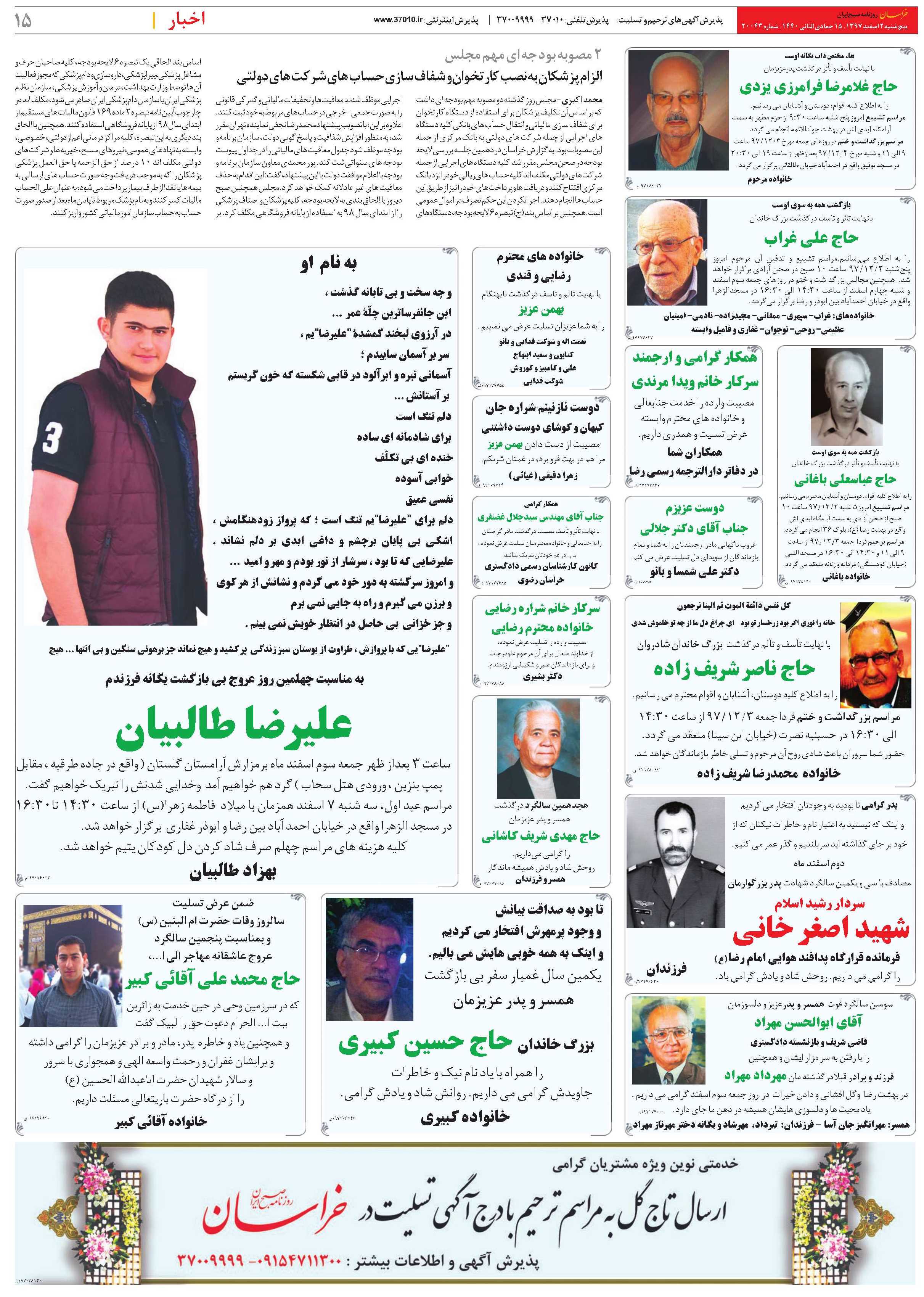محمد اکبری - مجلس روز گذشته دو مصوبه مهم بودجه ای داشت که براساس آن تکلیف پزشکان برای استفاده از دستگاه کارتخوان برای شفاف سازی مالیاتی و انتقال حساب های بانکی کلیه دستگاه های اجرایی از جمله شرکت های دولتی به بانک مرکزی از جمله این مصوبات بود. به گزارش خراسان در دهمین جلسه بررسی لایحه بودجه در صحن مجلس مقرر شد کلیه دستگاه های اجرایی از جمله شرکت های دولتی مکلف اند کلیه حساب های ریالی خود را نزد بانک مرکزی افتتاح کنند و دریافت ها و پرداخت های خود را نیز از طریق این حساب ها انجام دهند. اجرا نکردن این حکم تصرف در اموال عمومی است.همچنین بر اساس بند (ج) تبصره ۶ لایحه بودجه، دستگاههای اجرایی موظف شدند معافیتها و تخفیفات مالیاتی و گمرکی قانونی را به صورت جمعی- خرجی در حساب های مربوط به خود ثبت کنند. علاوه بر این، با تصویب پیشنهاد محمدرضا نجفی نماینده تهران مقرر شد، به منظور افزایش شفافیت و پاسخ گویی دولت، سازمان برنامه و بودجه موظف شود جدول معافیت های مالیاتی را در جداول پیوست بودجه های سنواتی ثبت کند. پور محمدی معاون سازمان برنامه و بودجه با اعلام موافقت دولت با این پیشنهاد، گفت: این اقدام به حذف معافیت های غیر عادلانه کمک خواهد کرد.مجلس همچنین صبح دیروز با الحاق بندی به لایحه بودجه، کلیه پزشکان و اصناف پزشکی را از ابتدای سال 98 به استفاده از پایانه فروشگاهی مکلف کرد. بر اساس بند الحاقی یک تبصره ۶ لایحه بودجه، کلیه صاحبان حرف و مشاغل پزشکی، پیراپزشکی، داروسازی و دام پزشکی که مجوز فعالیت آن ها توسط وزارت بهداشت، درمان و آموزش پزشکی، سازمان نظام پزشکی ایران یا سازمان دام پزشکی ایران صادر می شود، مکلف اند در چارچوب آیین نامه تبصره ۲ ماده ۱۶۹ قانون مالیات های مستقیم از ابتدای سال ۹۸ از پایانه فروشگاهی استفاده کنند.همچنین با الحاق بند دیگری به این تبصره، کلیه مراکز درمانی اعم از دولتی، خصوصی، وابسته به نهادهای عمومی، نیروهای مسلح، خیریه ها و شرکت های دولتی مکلف اند ۱۰ درصد از حق الزحمه یا حق العمل پزشکی پزشکان را که به موجب دریافت وجه صورت حساب های ارسالی به بیمه ها یا نقدا از طرف بیمار پرداخت می شود، به عنوان علی الحساب مالیات کسر کنند و به نام پزشک مربوط تا پایان ماه بعد از صدور صورت حساب به حساب سازمان امور مالیاتی کشور واریز کنند.