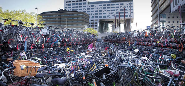 کنار ایستگاه قطار مرکزی آمستردام یکی از بزرگ ترین پارکینگ های دوچرخه جهان قرار دارد. اولین سوالی که با دیدن این پارکینگ به ذهنم رسید، این بود که مردم چگونه دوچرخه خود را از بین صدها دوچرخه مشابه دیگر تشخیص می دهند؟ بسیاری از مردم این شهر از پیر و جوان برای رفت و آمد خود در شهر از دوچرخه استفاده می کنند. آنها معتقدند با این کار افزون بر حفظ سلامت و تناسب اندام به پاکیزگی هوای شهرشان نیز کمک می کنند. البته لازم است یادآوری کنم هزینه بالای بنزین و حمل و نقل با وسایل نقلیه عمومی هم در این تصمیم بی تأثیر نیست. دوچرخه سواری در بسیاری شهرهای کوچک اروپا امری عادی است اما آمستردام که به لحاظ وسعت و جمعیت با شهرهای بزرگی مثل پاریس و برلین مقایسه می شود در این زمینه استثنا است. خیابانهای این شهر برای استفاده از دوچرخه کاملاً مناسب سازی شده است و چه بسا راندن دوچرخه در بسیاری موارد راحت تر از راندن خودرو باشد چراکه آمستردام به ویژه در بخش مرکزی پر از کوچه های باریک و کانال ها و پل هایی است که عبور با خودرو تقریباً در آنها غیر ممکن است. از آن طرف جالب است بدانید دوچرخه دزدی در این شهر بسیار شایع است، به ویژه دوچرخه گردشگرها که از رمز و راز بستن و قفل کردن دوچرخه شان در این شهر بی خبرند. این نکتهای است که تا به این شهر سفر نکنید و با این مسئله مواجه نشوید، کمتر رسانهای به آن اشاره میکند! در ضمن و با توجه به تعداد بالای دوچرخه درآمستردام تعمیرکار دوچرخه یکی از پردرآمدترین مشاغل در این کشور است و کمتر خیابانی در این شهر پیدا میشود که یک مغازه تعمیر دوچرخه نداشته باشد.