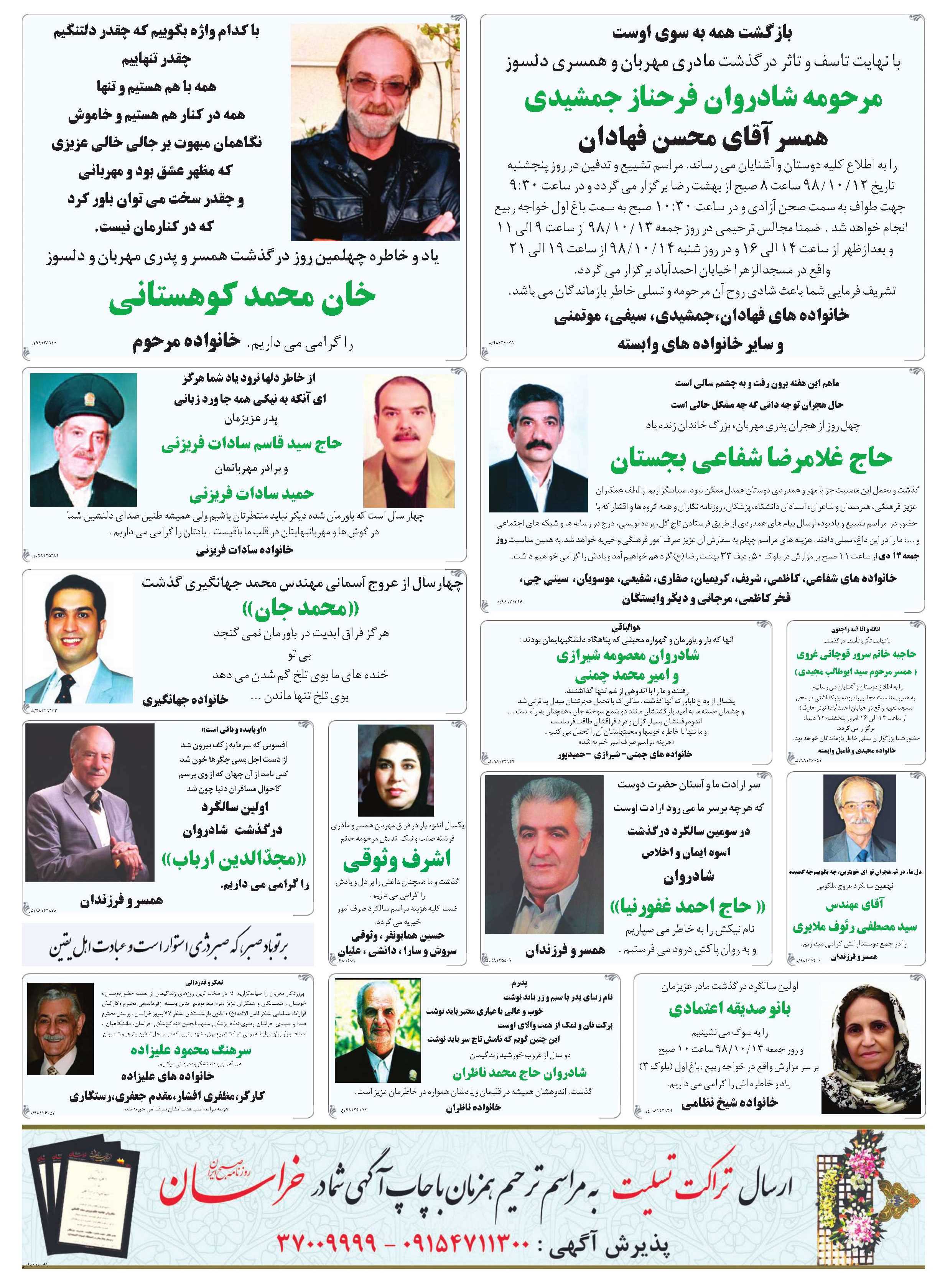 ۱۳۹۸ پنج شنبه ۱۲ دي