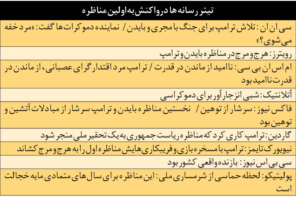 موج حملات غیر اخلاقی ترامپ و بایدن به یکدیگر در راس مهم ترین اخبار انتخاباتی آمریکا قرار دارد. اما مناظره اول را چه کسی برد؟
