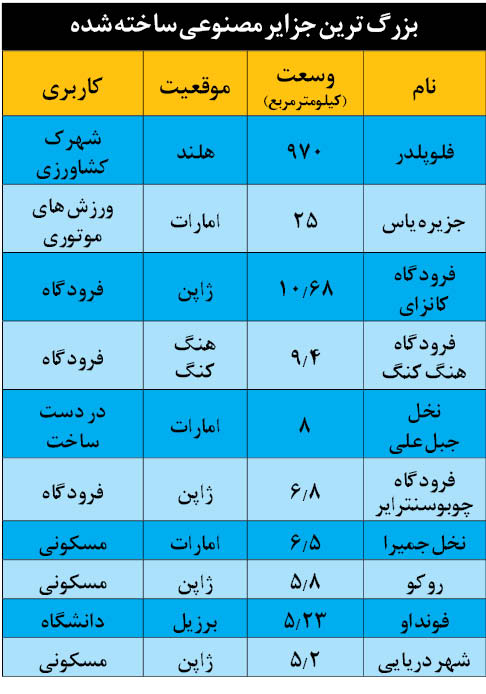 ناصری - همیشه کمبود زمین در کشورهای کوچک معضلی بزرگ بوده که با زیاد شدن جمعیت، مشکلات زیادی را برای مردم به وجود آورده است اما در این میان برخی کشورها بدون جنگ مساحت خود را افزایش داده و توانسته اند با پیشروی در آب یا ساخت جزیره های مصنوعی، اقدام به کشورگشایی کنند. البته برخی از این کشورها هم از ساخت جزایر مصنوعی دلیلی غیر از این داشته و به دنبال جذب گردشگر بوده اند. در روزهای گذشته گزارشی از صندوق جهانی طبیعت منتشر شد که نشان می داد سنگاپور از همین طریق که پیش از این گفتیم، توانسته طی چهار دهه، 20 درصد مساحت کشورش را افزایش دهد. امروز در این گزارش درباره این کشورگشایی ها و جزایر مصنوعی ساخته شده و خطرات زیست محیطی آن نوشته ایم.