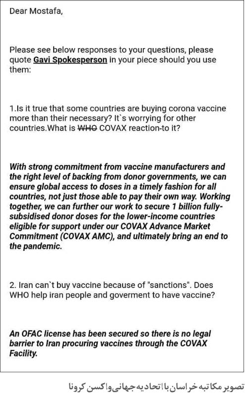 پاسخ WHO و COVAX به سوالات خراسان