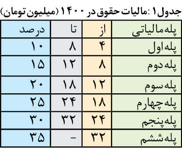 با توجه به موارد فوق، دو نکته قابل ذکر است: اول این که آمارها نشان می دهد حکم حدود 90 تا 95 درصد کارمندان دولت کمتر از 5 برابر حداقل حقوق (دستمزد) یعنی 10 میلیون تومان است. در نتیجه، در صورت تصویب پیشنهاد مطرح شده توسط نایب رئیس کمیسیون اقتصادی مجلس، صرفاً میزان افزایش حقوق 5 تا 10 درصد کارمندان دولت، تا حدودی کاهش خواهد یافت یعنی کمتر از 25 درصد خواهد شد. در ضمن این وضعیت درباره بازنشستگان به مراتب شدیدتر است یعنی درصد بازنشستگانی که حکم شان بالاتر از 5 برابر حداقل حقوق بوده، قطعا از 5 درصد هم کمتر است. اما مورد دوم مربوط به پیشنهاد خاندوزی است. مهم ترین ابهامی که در این باره قابل طرح است، میزان افزایش حقوق نجومی بگیران با توجه به پله های مالیات بر حقوق است که هفته گذشته به تصویب مجلس رسید.مطابق جزء 4 بند «الف» تبصره 12 لایحه بودجه 1400، مالیات بر حقوق در سال آینده براساس جدول شماره یک محاسبه می شود.