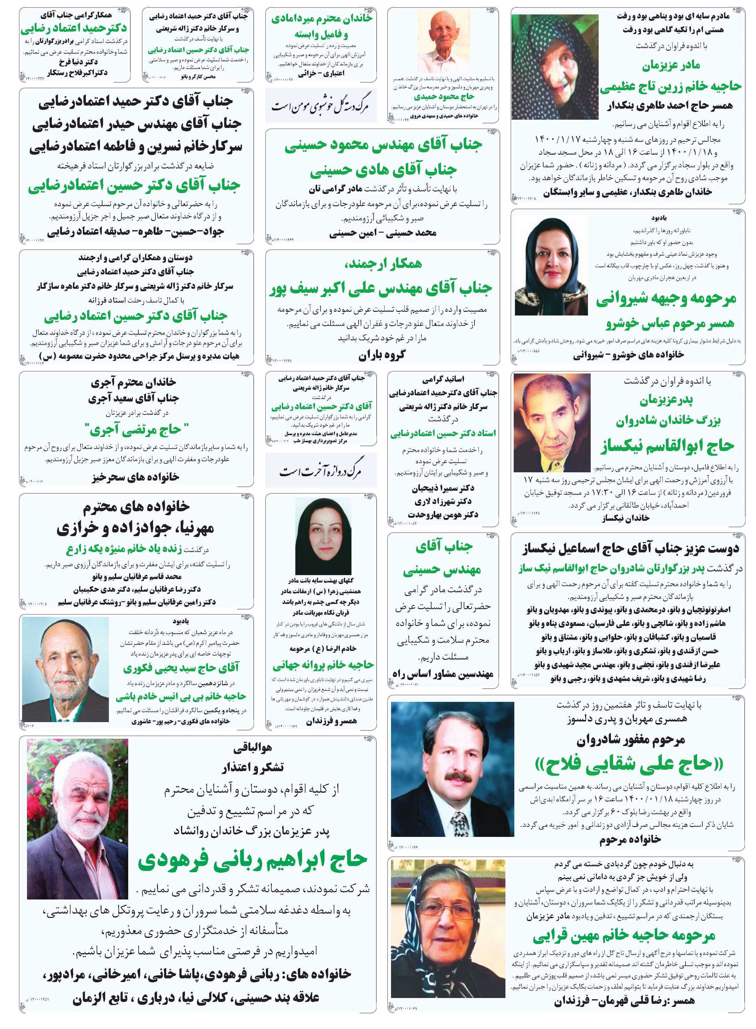 ۱۴۰۰ سه شنبه ۱۷ فروردين