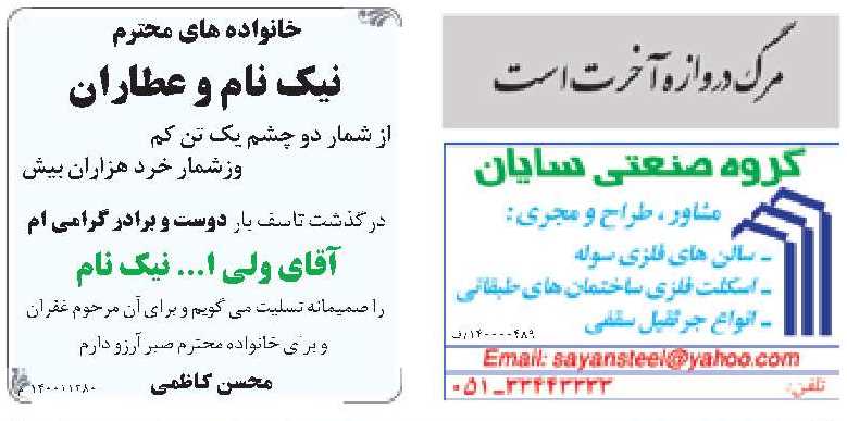 در صفحه 4 خراسان رضوی چرا مطالب اشتباه چاپ کرده اید؟ واقعا این حرف های رئیس کمیسیون املاک است؟ نرخ مصوب کمیسیون 800 هزار تومان از هر طرف است به علاوه 9 درصد مالیات ارزش افزوده اما شما نوشته اید کلا 800 هزار تومان از دو طرف.
