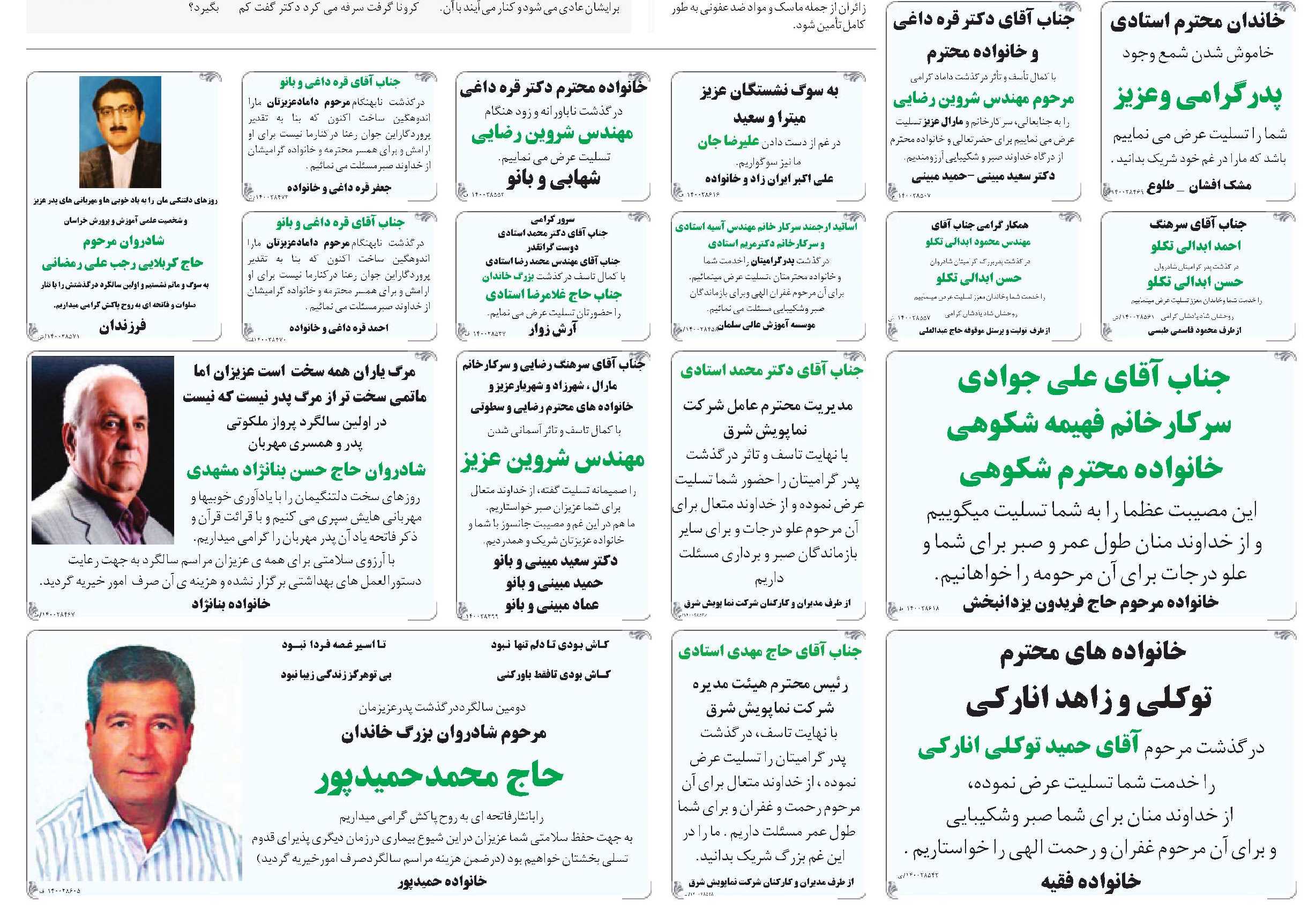 استاندار خراسان رضوی چرا این همه خوش خیال است؟ یک نفر به او بگوید آقای محترم! حتما باید فوتی های استان به اندازه کشور شود تا فکری کنید؟ چرا برای تعطیلی، ممنوعیت مراسم، تدارک دارو و بیمارستان صحرایی و... کاری نمی کنید؟
