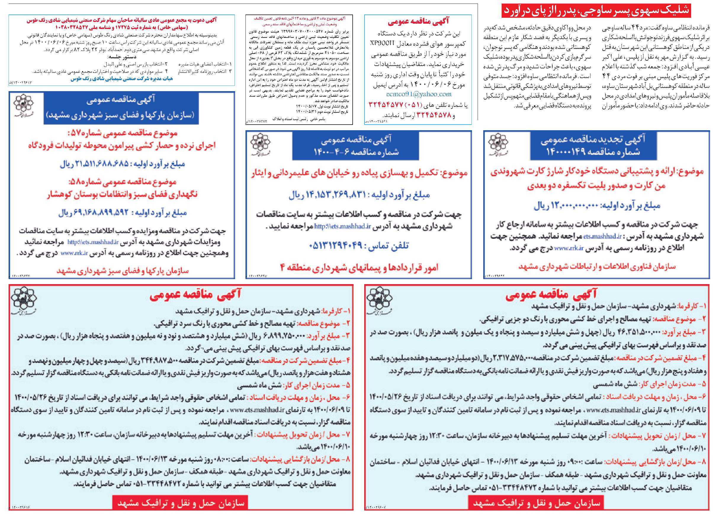 رئیس پلیس آگاهی خراسان رضوی روز گذشته با بیان این خبر و در گفت وگویی اختصاصی با خراسان اظهار کرد: چهارم تیر گذشته، نزاعی در منطقه دهرود مشهد (انتهای بولوار رسالت) رخ داد که طی آن مرد 43 ساله ای به نام «رضا- ن» با ضربات چماق مجروح و به بیمارستان منتقل شد.