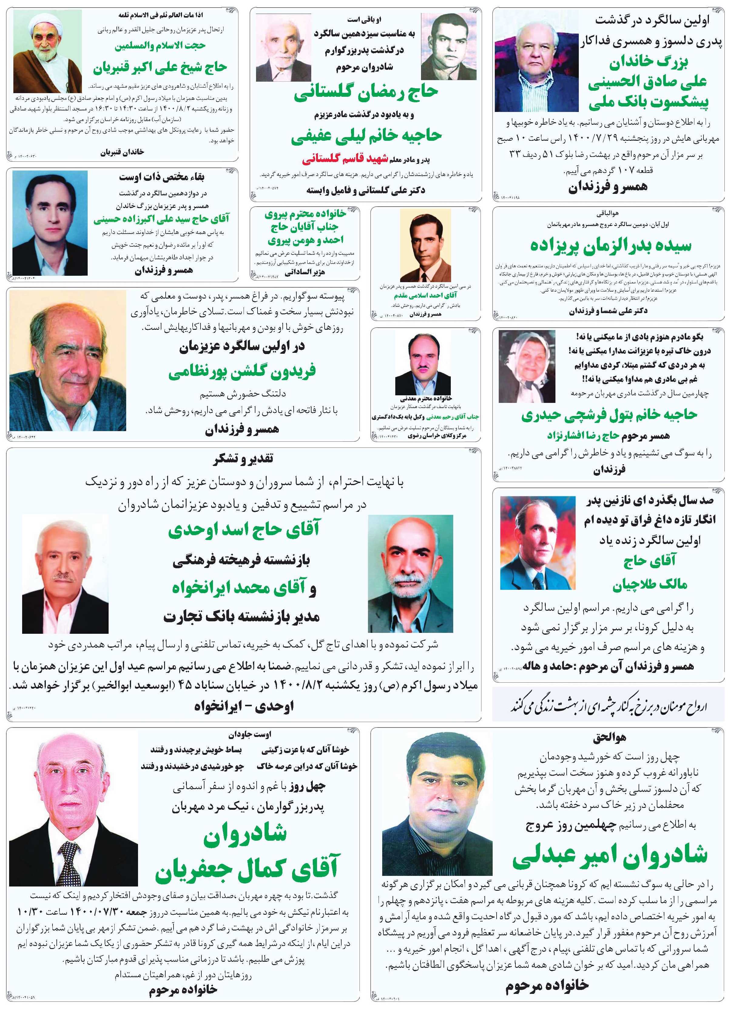 ۱۴۰۰ پنج شنبه ۲۹ مهر