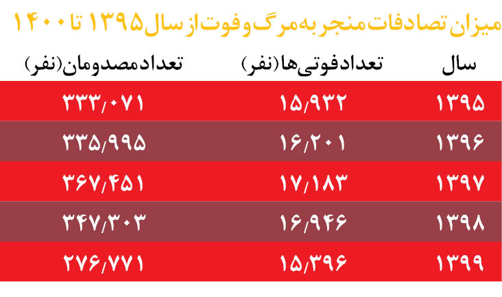 مقایسه تلفات تصادفات در سالهای مختلف