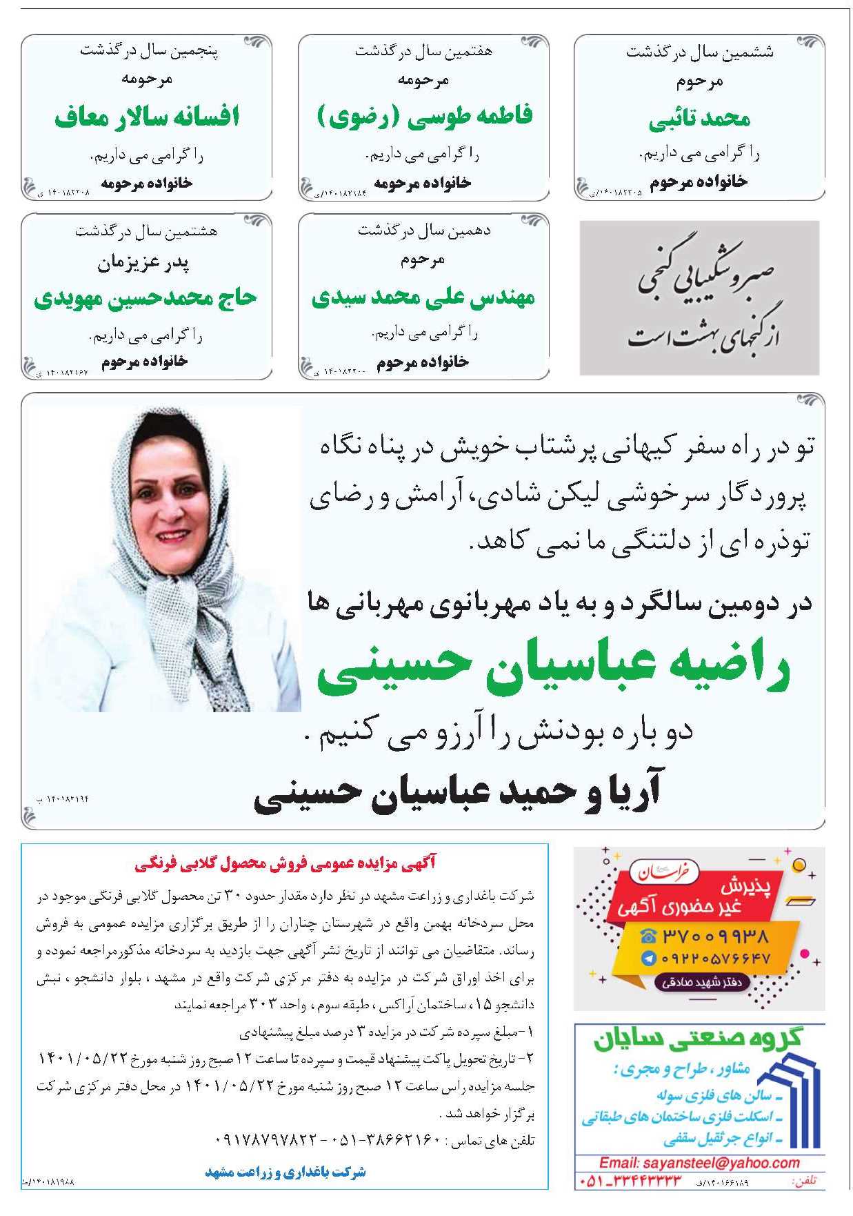 روز دوشنبه ۱۰ مرداد از ساعت 2:45 عصر، سیستمهای نوبت دهی بیماران درمانگاه ولیعصر ( دادگر وکیل آباد مشهد) بیش از دو ساعت قطع بود و مردم مجبور بودند برای دریافت خدمات،آزاد پرداخت کنند. بدین وسیله از دلسوزی مسئولان مربوط در خدماتدهی به بیماران نیازمند تشکر میکنم.