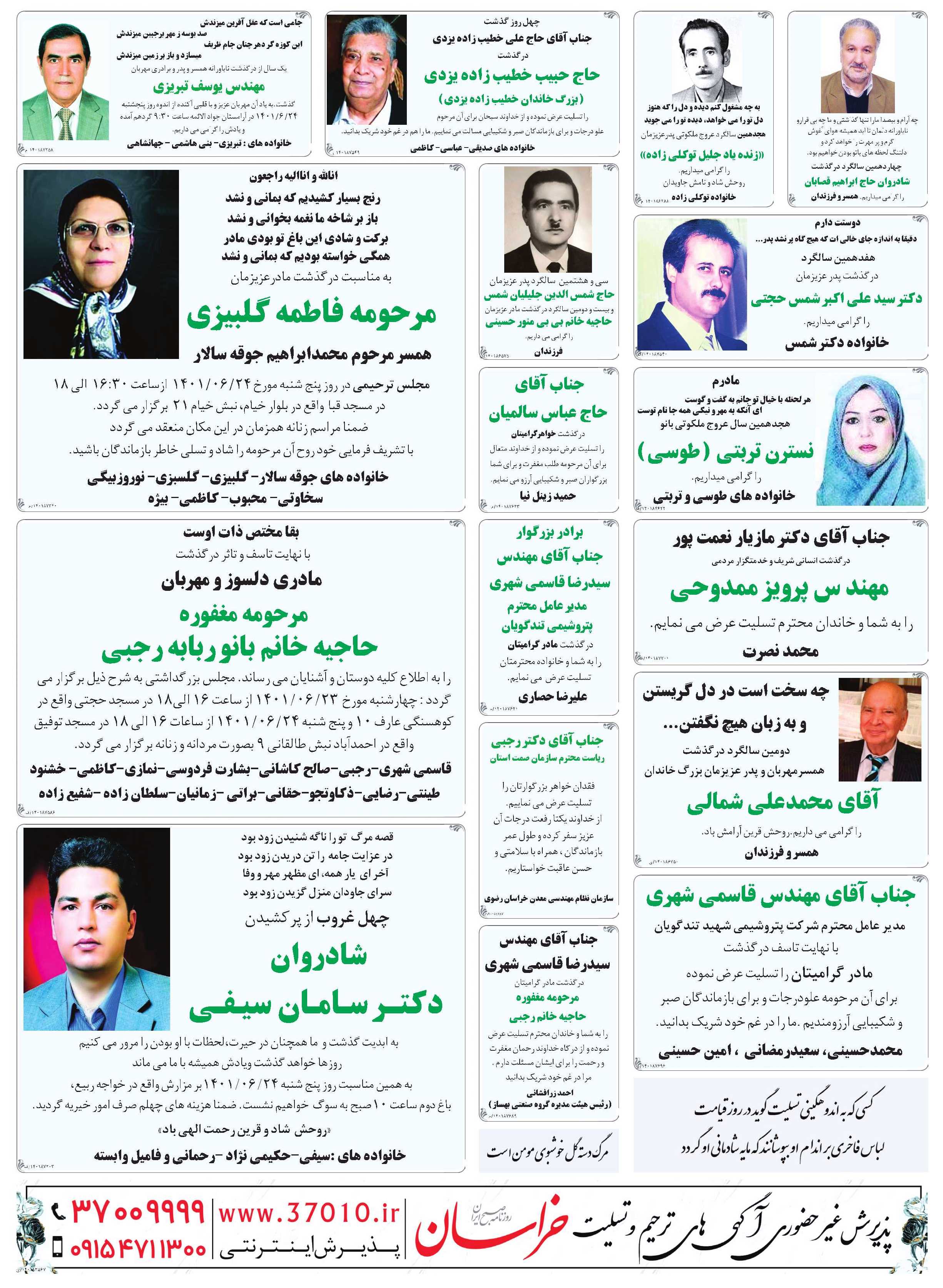 صفحه 11 : ترحیم و تسلیت