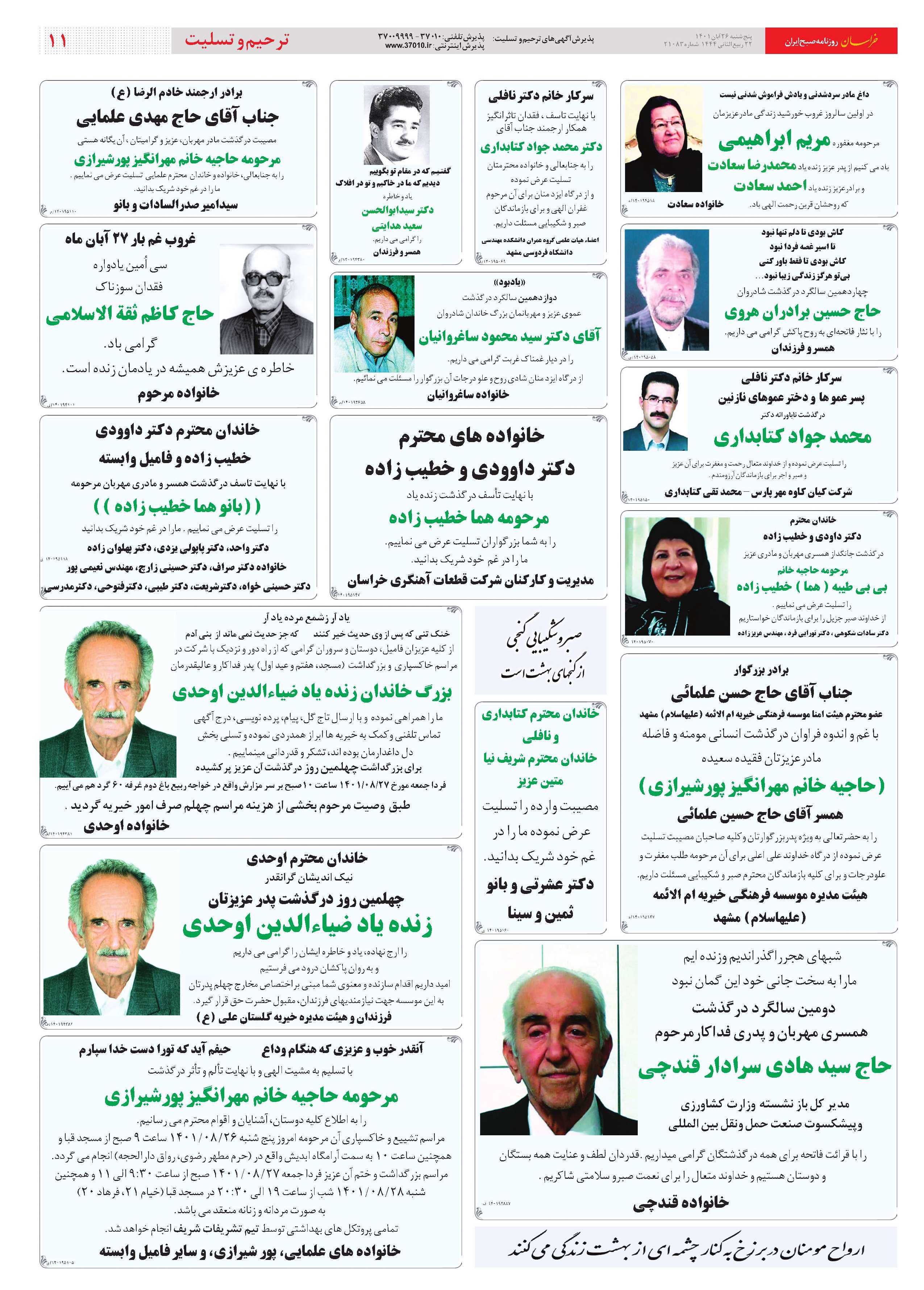 صفحه 11 : ترحیم و تسلیت