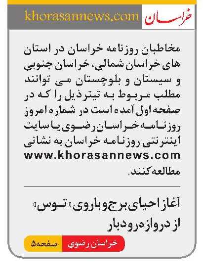 خراسان: ضمن تشکر از توجه شما خواننده محترم، کم شدن این صفحات برای یک روز و به دلیل برخی مشکلات بوده است که بابت این موضوع از مخاطبان قدیمی و صمیمی خراسان عذرخواهی می کنیم.