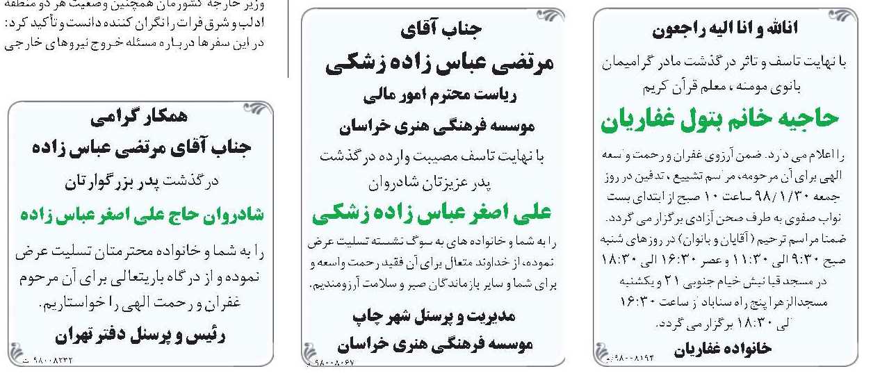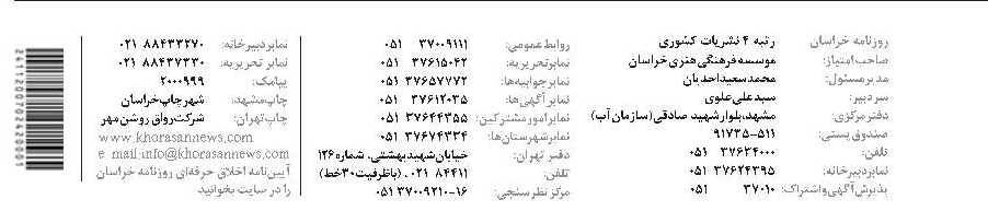 شماره : 20077 - ۱۳۹۸ پنج شنبه ۲۹ فروردين