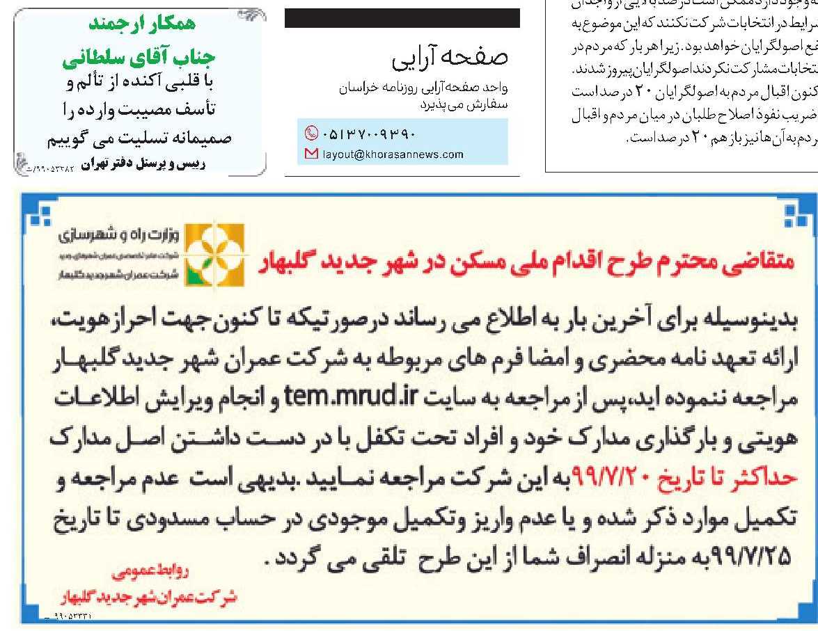 شماره : 20494 - ۱۳۹۹ چهارشنبه ۱۶ مهر