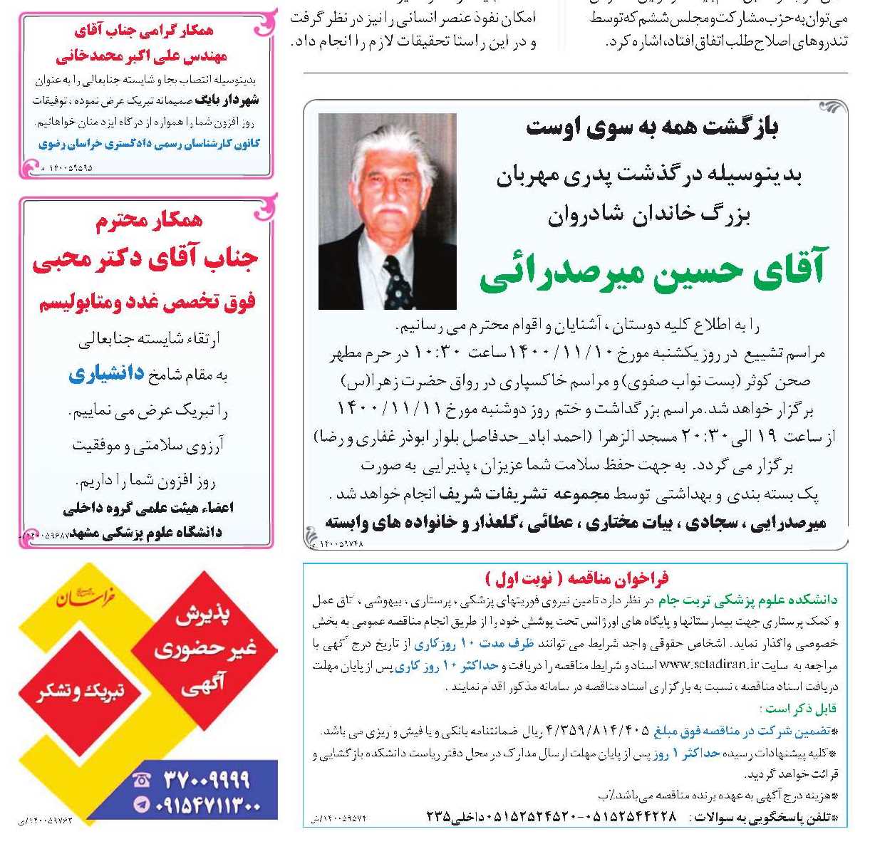 شماره : 20864 - ۱۴۰۰ شنبه ۹ بهمن