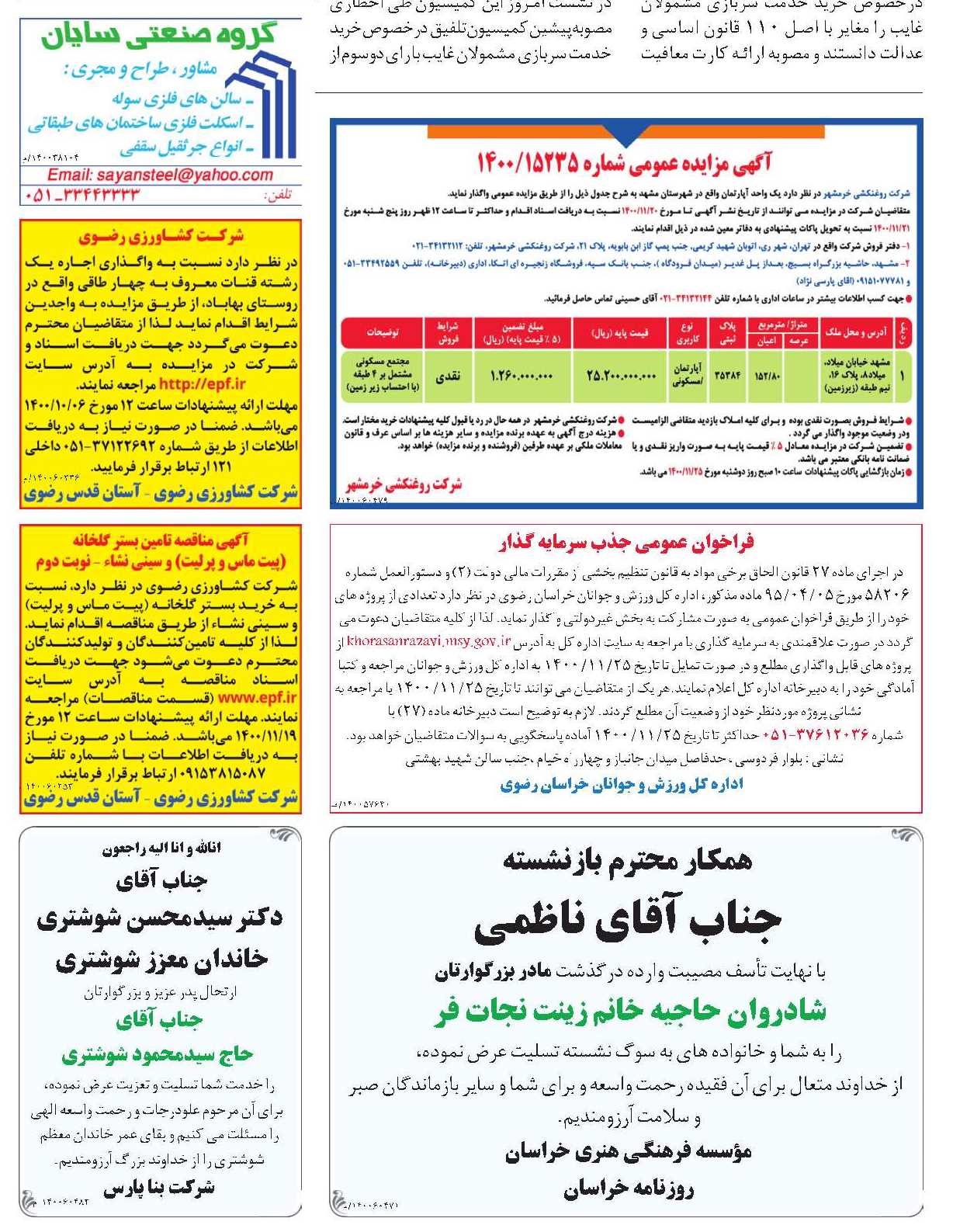 درباره موضوع نوک کوه یخ... باید بگویم جانا سخن از زبان ما می گویی. واقعاً چشم انداز اطراف گنبد مطهر امام رضا(ع) بسیار بد منظره و شلوغ و بی قواره و چشم خراش شده. حق اکثریت مردم ارجح است بر حق ناحق چند سازنده که فقط به دنبال سود و پر شدن جیب خود هستند. از مسئولان دغدغه مند تقاضا داریم هر چه زودتر دست این سودجوها را از تجاوز به حریم گنبد رضوی (ع) کوتاه و از پیشرفت بیشتر آن ها جلوگیری کنند.