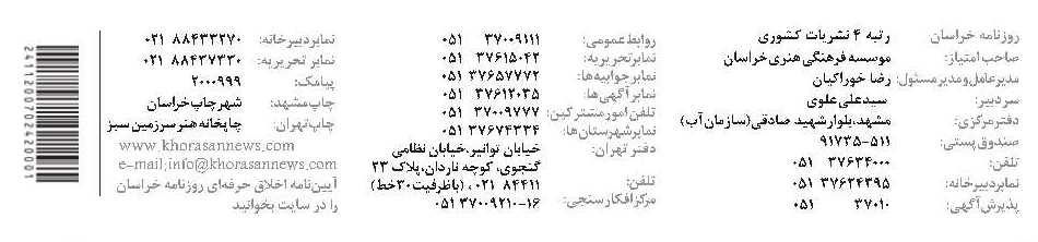 شماره : 21023 - ۱۴۰۱ پنج شنبه ۱۰ شهريور