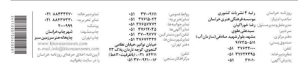 شماره : 21048 - ۱۴۰۱ شنبه ۱۶ مهر