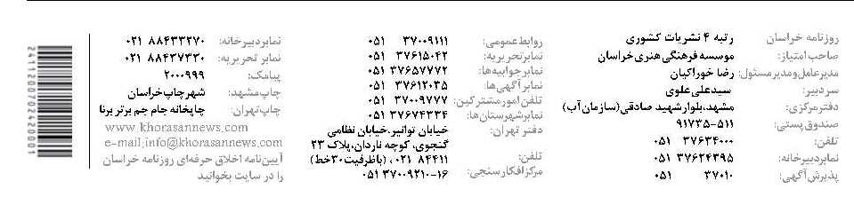 شماره : 21291 - ۱۴۰۲ چهارشنبه ۱ شهريور