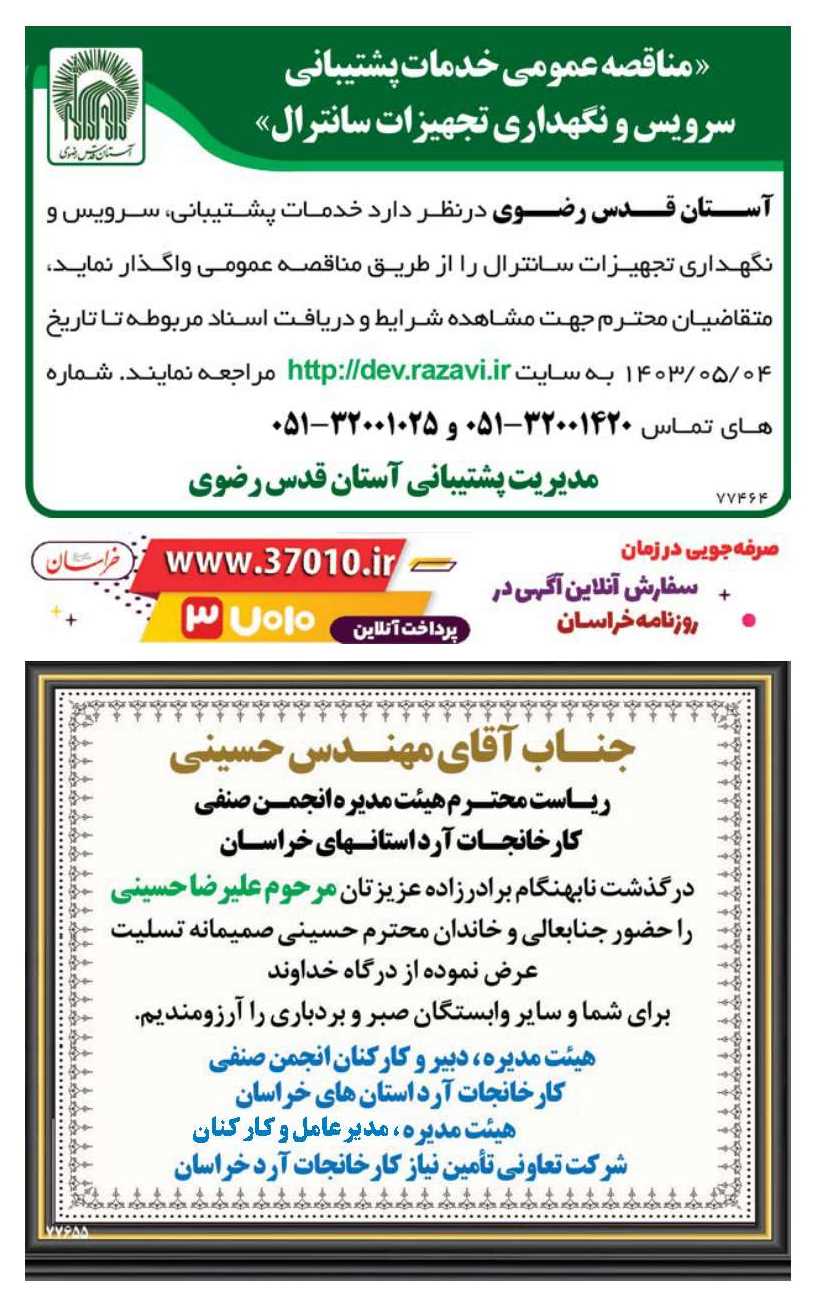 شماره : 21540 - ۱۴۰۳ شنبه ۳۰ تير