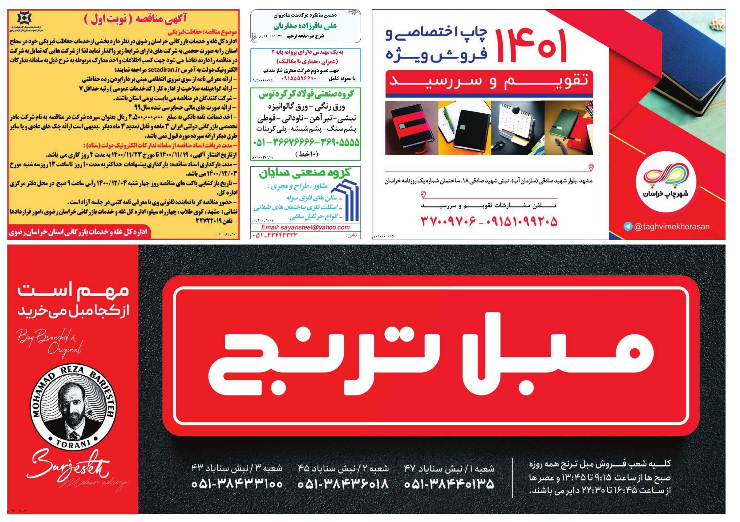 شماره : 20873 - ۱۴۰۰ سه شنبه ۱۹ بهمن