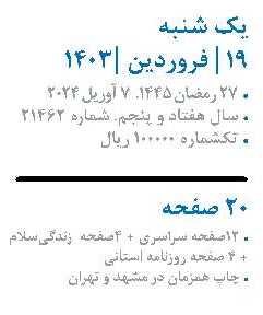 شماره : 21462 - ۱۴۰۳ يکشنبه ۱۹ فروردين