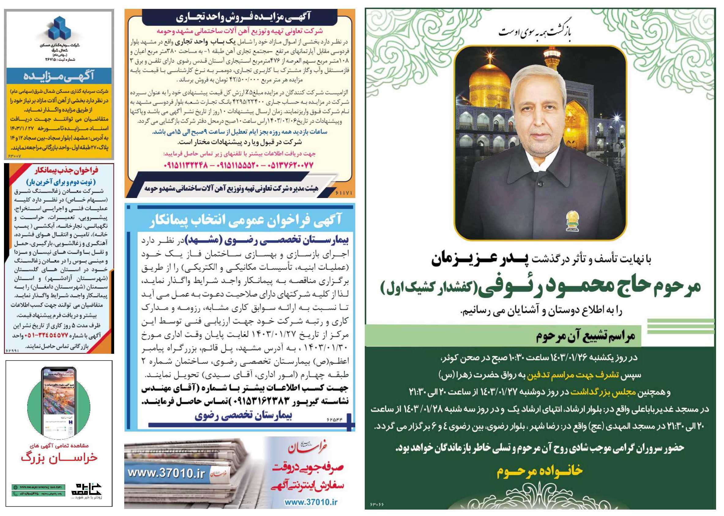 در پایان باید اذعان کرد هرچند سهم خراسان رضوی از درآمدهای مالیاتی دولت ناچیز است و دلیل اصلی آن حضور نداشتن ابرشرکتهای دولتی مانند ذوب آهن و نفت و گاز است و البته درآمدهای مالیاتی بخشی از شرکتهای بزرگ استان مانند معادن سنگان خواف و امثال آن در استانهای دیگر رسیدگی و اخذ می شود که پرداختن به این موضوع خارج از حوصله این نوشتار است و در گزارش های متعدد روزنامه خراسان از سال 1395 پیگیر بازگشت پرونده مالیاتی شرکتهای فعال در استان به داخل استان بوده و در مواردی نیز این بازگشت محقق شده است. اما اینکه دولت تنها 60 درصد اعتبارات عمرانی 1402 را به استان بحران زده و عقب مانده به لحاظ زیر ساختی تخصیص دهد درحالیکه این استان 2 هزار میلیارد تومان بیشتر از سهم ابلاغی برای دولت درآمدزایی کرده است و از نظر قانونی باید به استان بازگردانده شود خود مؤید گفته های همیشگی ما در روزنامه خراسان بوده و هست که استان خراسان رضوی و مشهد الرضا «استان و کلانشهر وعده ها» برای دولتی هاست و این محدود به دولت فعلی نیست اما انتظار آن است وقتی رئیس دولت سالها خادم و تولیت آستان قدس رضوی بوده و از کمبودها و عقبماندگی زیرساختی مشهد الرضا مطلع است و هر بار که به این خطه سفرکرده وعده و دستور داده که اعتبارات عمرانی و پروژههای عمرانی استان در اولویت قرار گیرد چرا به وقت تحقق به این دستورات جامه تحقق پوشانده نمی شود.